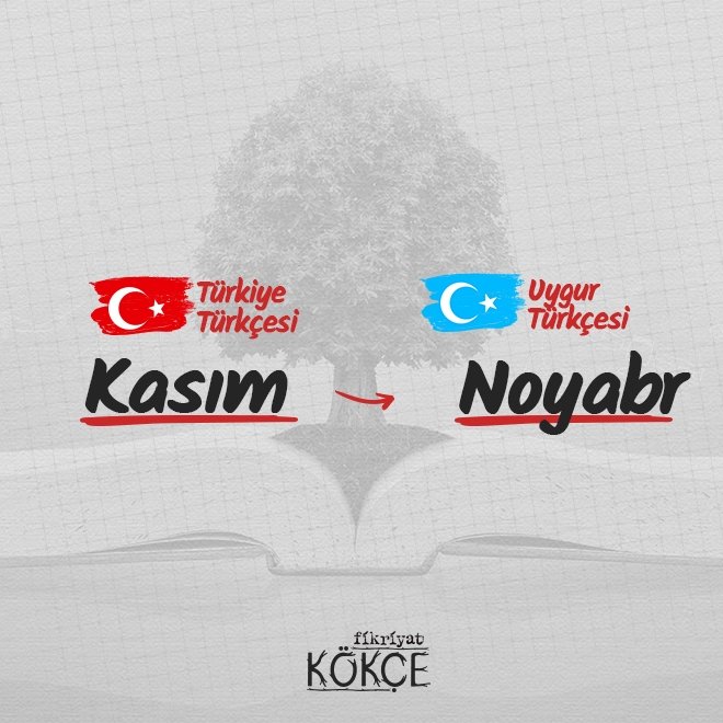 🔹 Uygur lehçesinde kasım ayını noyabr, on birinçi ay ifadeleri karşılar.