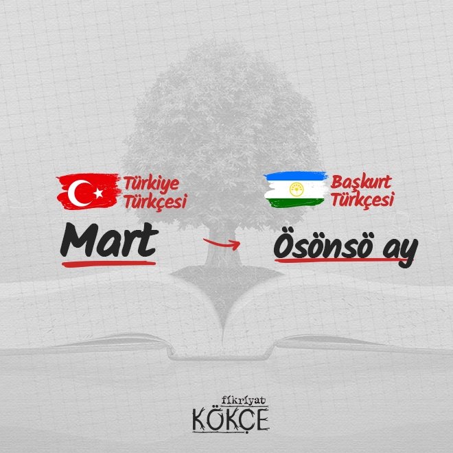 🔹 Tatar lehçesinde Mart ayı, üçüncü ay manasına gelen "öçinci ay" ile karşılık bulur.