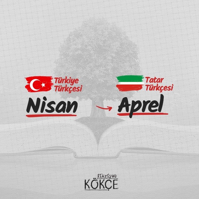 🔹 Kuzeybatı Türk lehçeleri grubunda yer alan Tatar Türkçesinde Nisan ayını Rusça kökenli bir kelime olan "aprel" ifadesi karşılamaktadır.