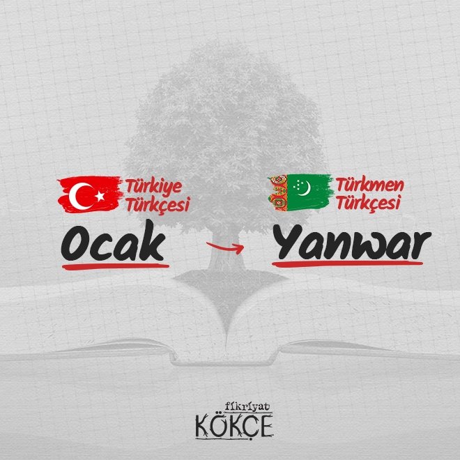 🔹 Türkmen Türkçesinde de Rusçadan dilsel ödünçleme mevcuttur. Ocak ayını bu lehçede "yanwar" sözcüğü karşılar.
