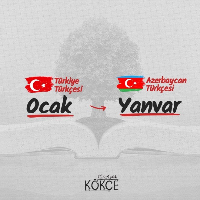 🔹 Türkiye Türkçesi ile benzer özellikleri var olan Azerbaycan lehçesinde Ocak ayını, Rusça kelime olan "yanvar" sözcüğü karşılar.