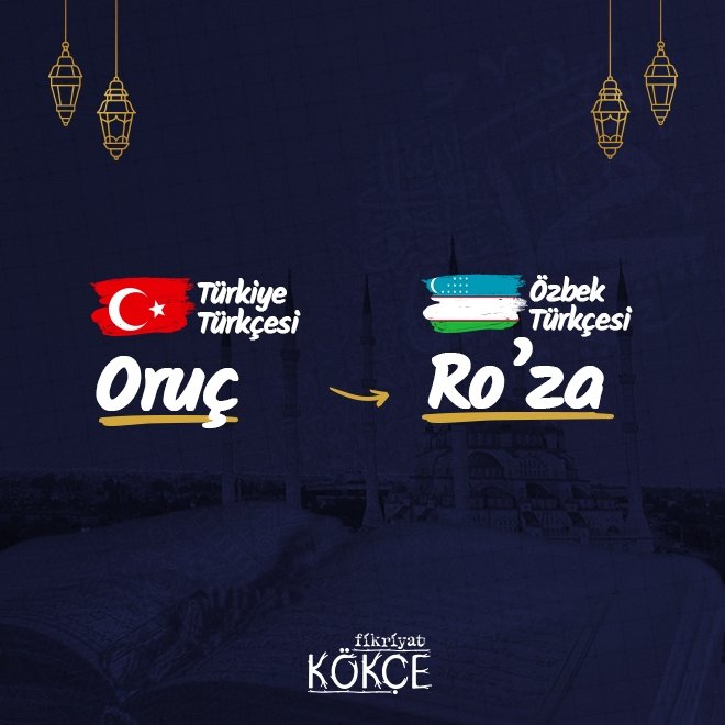 ◾ Özbek Türkçesi Karluk grubunun temsilcilerindendir. Bu lehçede "oruç" kelimesini "ro'za" sözcüğü karşılamaktadır. Oruç kelimesi diğer lehçelerde "oraza" şeklinde karşımıza çıkarken Özbek Türkçesinde /o/ harfinin düştüğünü görmekteyiz.