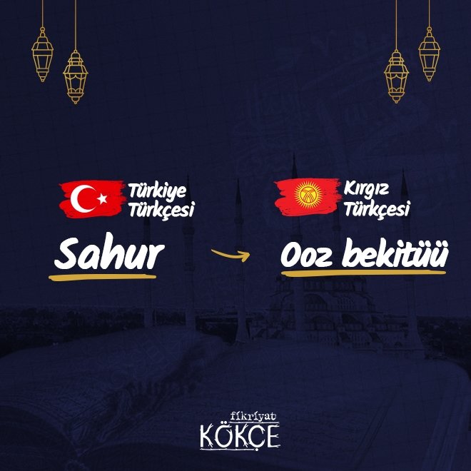 💠 Kuzeybatı grubunda yer alan ve yuvarlaşması ile ünlü olan lehçe, Kırgız Türkçesidir. Bu Türkçede "sahur" kelimesini karşılayan, ağız bekletmek anlamındaki "ooz bekitüü" ifadesi bulunmaktadır.