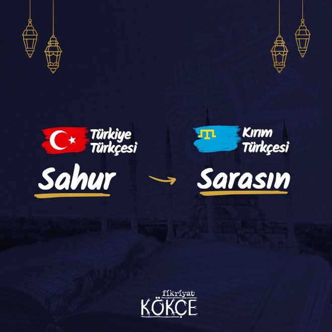 💠 Tatarların bir diğer kolu olan ve günümüzde Ukrayna sınırları içinde yer alan Kırım Tatar Türkçesinde, "sahur" sözcüğü yerine "sarasın" kelimesi kullanılmaktadır.