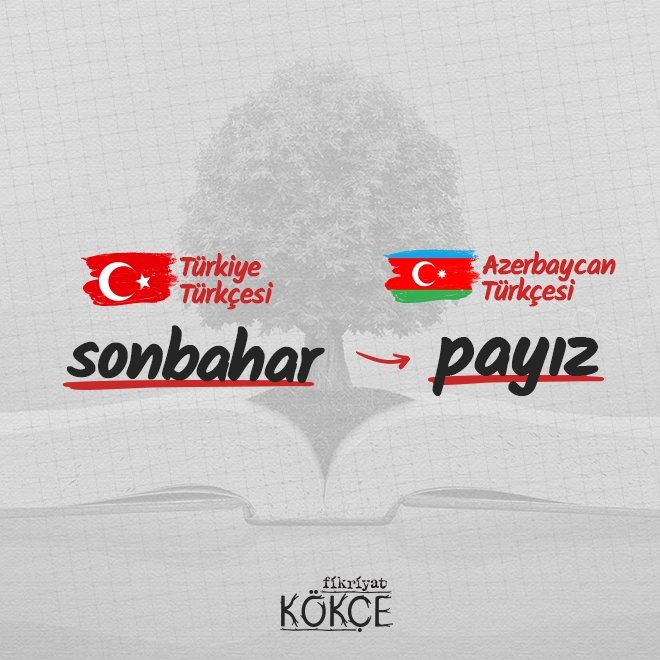 🔹 Fakat mevsimler hususunda birtakım farklılıklar bulunur. Bunlardan biri de güz sözcüğüdür. Azerbaycan Türkçesinde bu kelimeyi payız ifadesi karşılamaktadır.