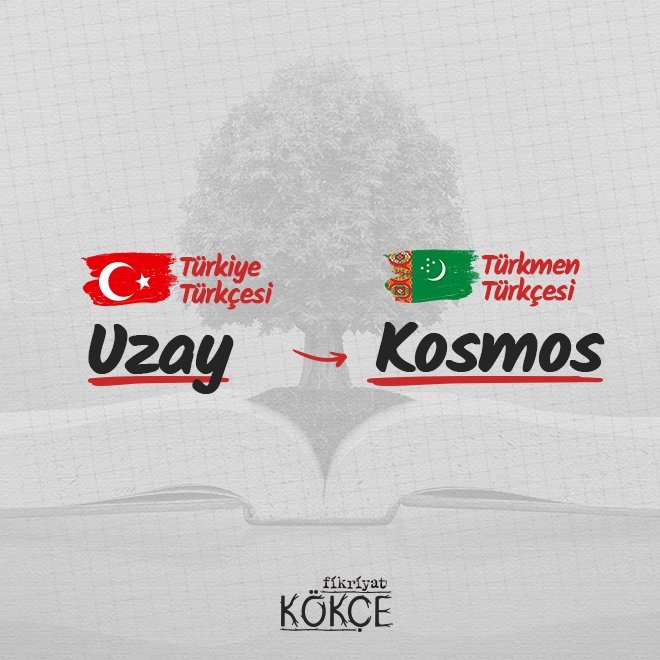 🔹 Bu lehçede uzay kelimesi, "kosmos ve item" ifadeleri ile karşılık bulmaktadır.