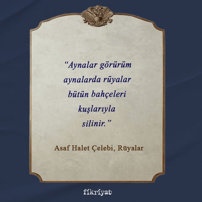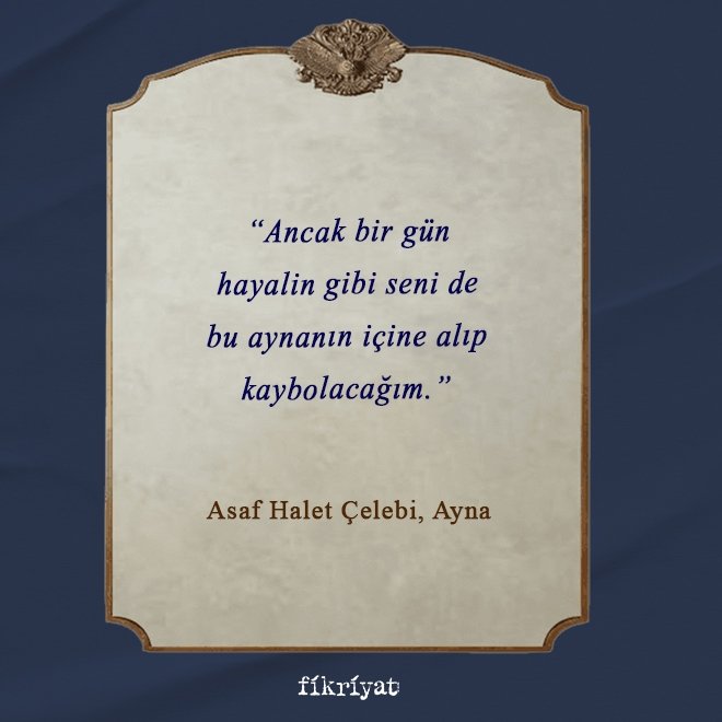 ◾Türk şiirinin en renkli ve derin simalarından biri olan Asaf Halet'in şiirlerinde de ayna sıklıkla geçer. Kimi zaman masal temalı bir şiirde aynadan bahsederken kimi zaman aynayı bir geçit olarak kullanan şair aynayı ruhsal buhranların yanı sıra daha çok tasavvufi ve felsefi bir zeminde kullanır.