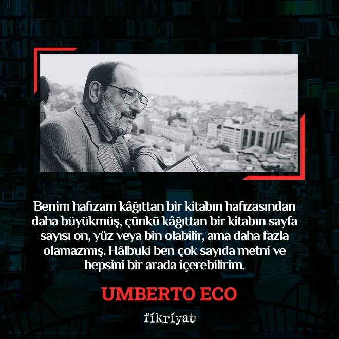 İnsanlığın en büyük dostu olan olan kitaplar tarih boyunca büyük bir ilgi ve saygıya mazhar oldular. 20. ve 21. yüzyılın en büyük bibliyofillerinden olan Umberto Eco da kitap sevgisi, kitap toplayıcılığı ve kitap etrafında önemli denemeler kaleme aldı. Umberto Eco'nun okundukça açılan kitabı Bitkisel Hafıza ve Bibliyofili Üzerine Diğer Yazılar kitabından en güzel alıntıları sizler için derledik.