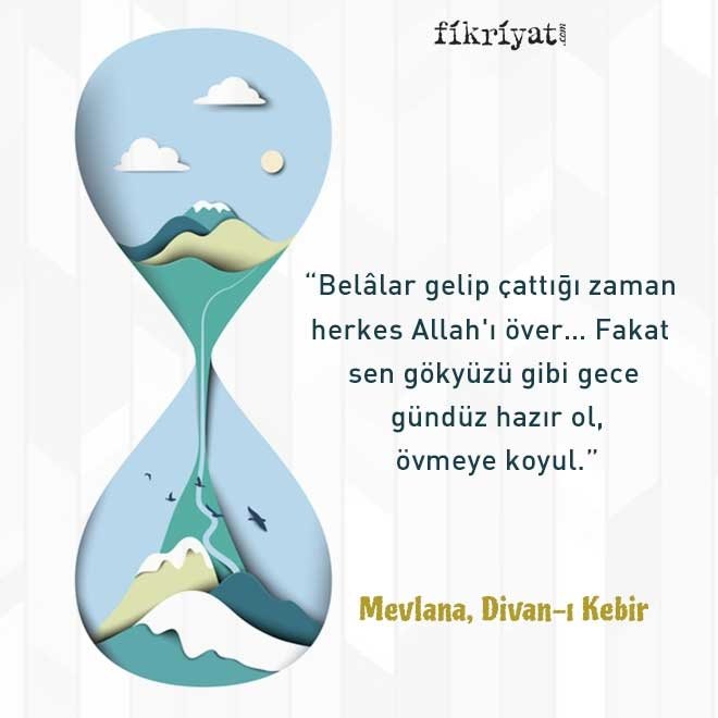 "Belâlar gelip çattığı zaman herkes Allah'ı över… Fakat sen gökyüzü gibi gece gündüz hazır ol, övmeye koyul."