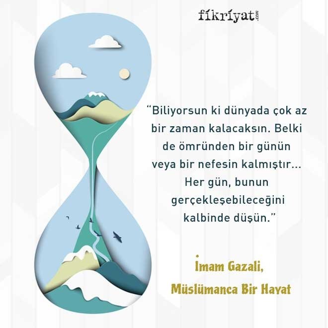 "Biliyorsun ki dünyada çok az bir zaman kalacaksın. Belki de ömründen bir günün veya bir nefesin kalmıştır... Her gün, bunun gerçekleşebileceğini kalbinde düşün."