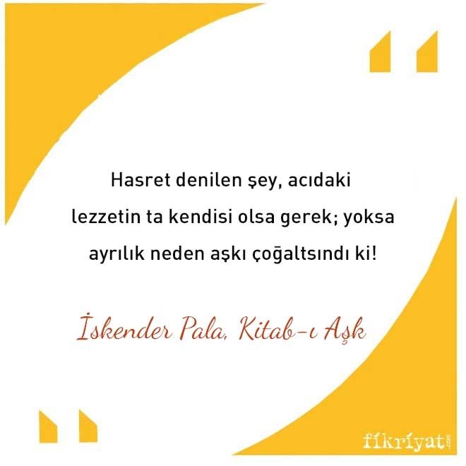 "Hasret denilen şey, acıdaki lezzetin ta kendisi olsa gerek; yoksa ayrılık neden aşkı çoğaltsındı ki!"