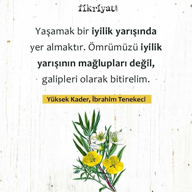 Ömrümüz, iyilik yolculuğundan ibarettir. Güzellik, adalet, merhamet, nezaket, samimiyet gibi pek çok unsuru da içerisinde barındırır. Her insanın kalbinde var olan iyilik tohumunun yetişmesi de ancak kişinin kendi elindedir. Merhamet ile ona can suyu olabileceğiniz gibi kötü söz ve riya ile köklerini kurutabilirsiniz. "Yaşamak bir iyilik yarışında yer almaktır." der İbrahim Tenekeci. Sizler için usta yazarların iyilik hakkında çarpıcı alıntılarını derledik.