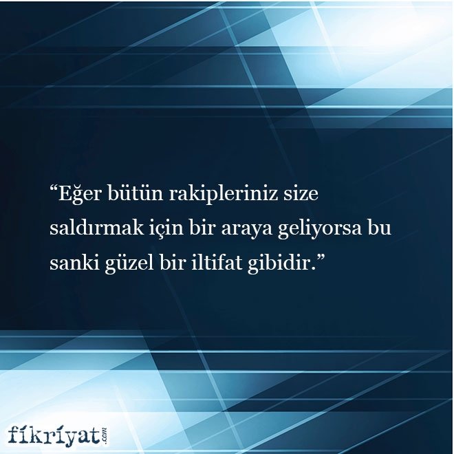 "Eğer bütün rakipleriniz size saldırmak için bir araya geliyorsa bu sanki güzel bir iltifat gibidir."