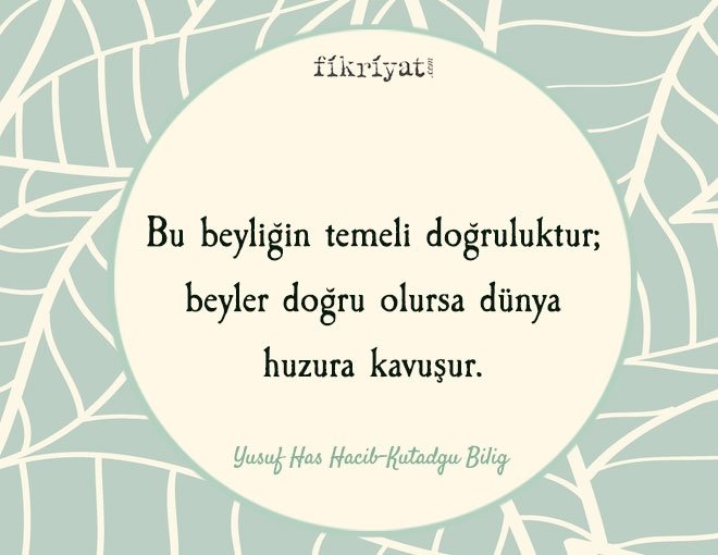 Bu beyliğin temeli doğruluktur; beyler doğru olursa dünya huzura kavuşur.