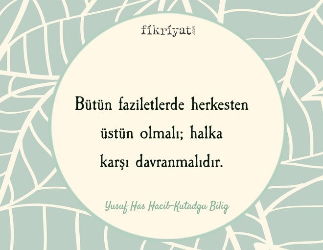 Bütün faziletlerde herkesten üstün olmalı; halka karşı davranmalıdır.