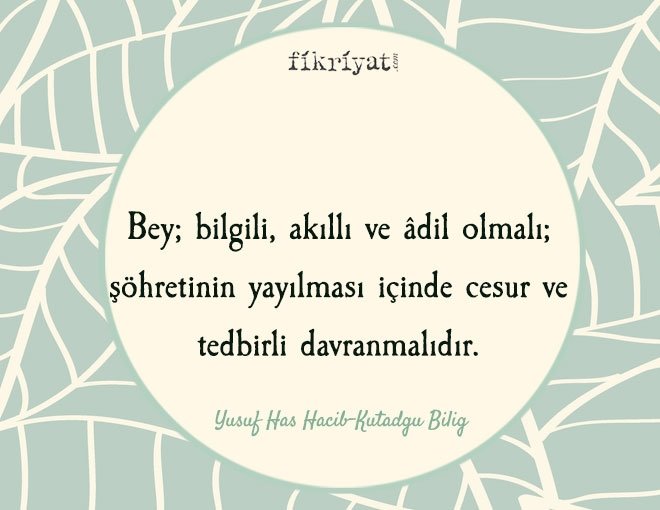Edebiyatımızın ilk siyasetnamesi olan Kutadgu Bilig, hükümdar ve idarecilere verdiği öğütler itibarıyla bir nasihatname, ülkenin yönetimi ile ilgili tespitleri açısından bir siyasetname kitabıdır. Mutlu olma bilgisi anlamına gelen Kutadgu Bilig'i yazan Yusuf Has Hacip, eserin yazılış nedeni şöyle açıklar: "Ben, okuyanın elinden tutup kutlu kılması için, kitabın adını Kutadgu Bilig koydum. Okuyucunun eliyle iki dünyada da kutluluğa, saadete ermesi için söz söyledim ve kitap yazdım. Eğer insan, iki dünyayı da kut tutarsa saadete ermiş demektir, bu sözüm tamamen doğrudur, buna inan." Sizler için Kutadgu Bilig'den öğütleri derledik.