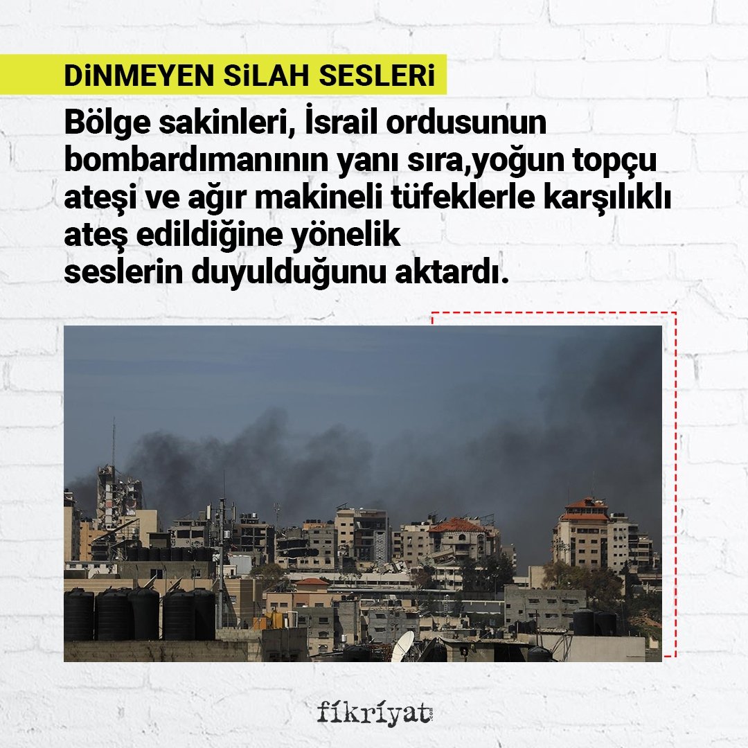 🔹 Bölge sakinleri, İsrail ordusunun bombardımanının yanı sıra, yoğun topçu ateşi ve ağır makineli tüfeklerle karşılıklı ateş edildiğine yönelik seslerin duyulduğunu aktardı.