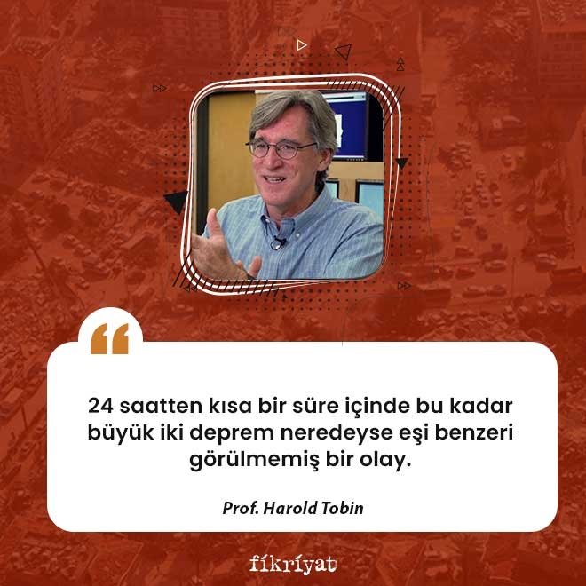 🔷 Tobin, "Bunlar, sadece Türkiye'de son yıllarda yaşadığımız en büyük deprem değil, dünyada da son yüzyılda ya da daha uzun süredir meskun bölgelerde yaşanan en büyük deprem." yorumunda bulundu.