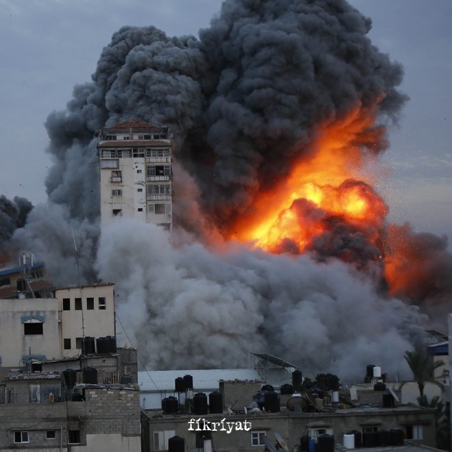 ◾ İsrail ordusu başlattığı Gazze'ye yönelik harekatta ilk önce Er-Rimal mahallesi, Şüheda caddesi üzerinde Filistin Kulesi olarak anılan yapıyı bombaladı.