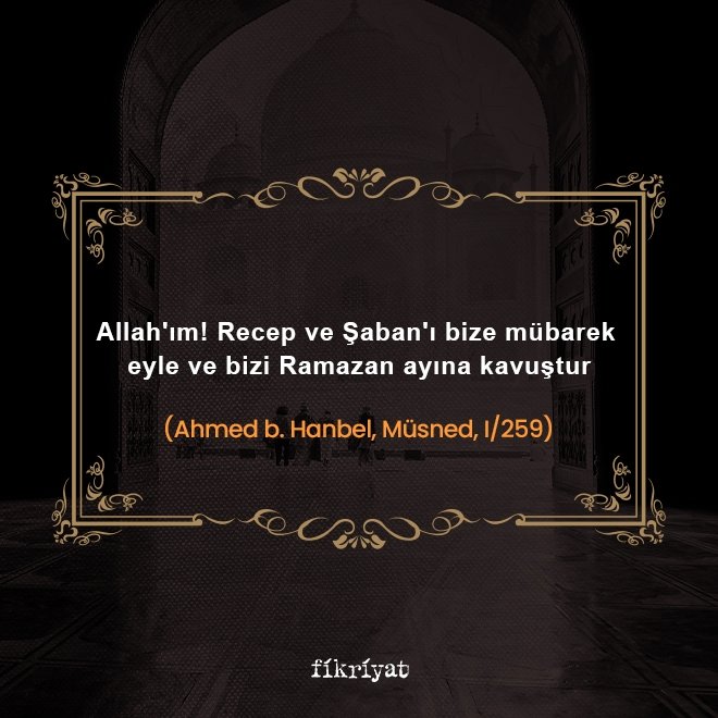 🔸 Peygamber Efendimiz (SAV) Recep ayı girdiği zaman:"Allah'ım Recep ve Şaban'ı bize mübarek eyle ve bizi Ramazan ayını bize mübarek eyle (Ramazan'a kavuştur) " diye dua ederdi.