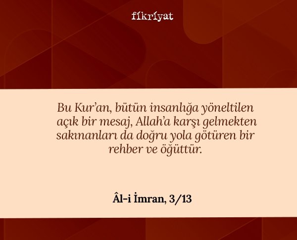 Bu Kur'an, bütün insanlığa yöneltilen açık bir mesaj, Allah'a karşı gelmekten sakınanları da doğru yola götüren bir rehber ve öğüttür.