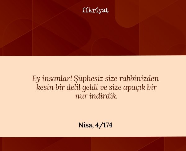 Ey insanlar! Şüphesiz size rabbinizden kesin bir delil geldi ve size apaçık bir nur indirdik.