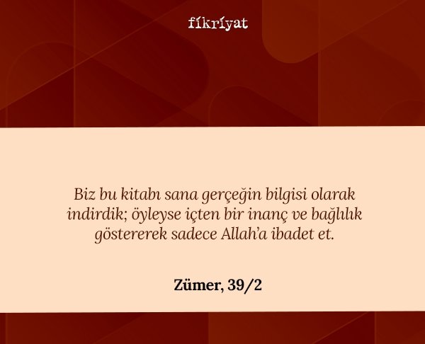 Biz bu kitabı sana gerçeğin bilgisi olarak indirdik; öyleyse içten bir inanç ve bağlılık göstererek sadece Allah'a ibadet et.
