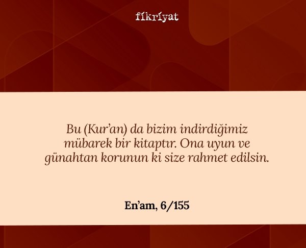 Bu (Kur'an) da bizim indirdiğimiz mübarek bir kitaptır. Ona uyun ve günahtan korunun ki size rahmet edilsin.
