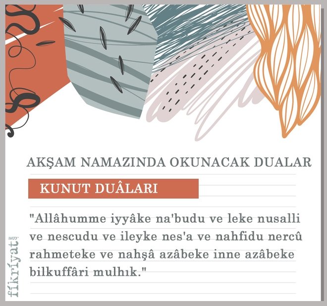 Okunuşu: "Allâhumme iyyâke na'budu ve leke nusalli ve nescudu ve ileyke nes'a ve nahfidu nercû rahmeteke ve nahşâ azâbeke inne azâbeke bilkuffâri mulhık."