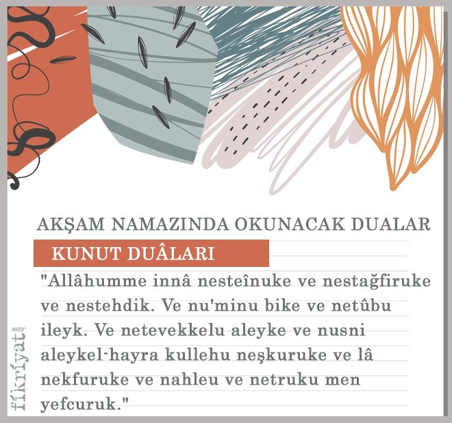 Anlamı: "Allahım! Senden yardım isteriz, günahlarımızı bağışlamanı isteriz, razı olduğun şeylere hidayet etmeni isteriz. Sana inanırız, sana tevbe ederiz. Sana güveniriz. Bize verdiğin bütün nimetleri bilerek seni hayır ile överiz. Sana şükrederiz. Hiçbir nimetini inkar etmez ve onları başkasından bilmeyiz. Nimetlerini inkar eden ve sana karşı geleni bırakırız." ***
