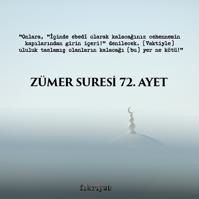 Zümer Suresi 72. Ayetin mealini okumak ve dinlemek için tıklayın