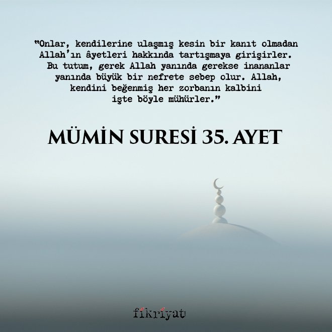 "Onlar, kendilerine ulaşmış kesin bir kanıt olmadan Allah'ın âyetleri hakkında tartışmaya girişirler. Bu tutum, gerek Allah yanında gerekse inananlar yanında büyük bir nefrete sebep olur. Allah, kendini beğenmiş her zorbanın kalbini işte böyle mühürler."