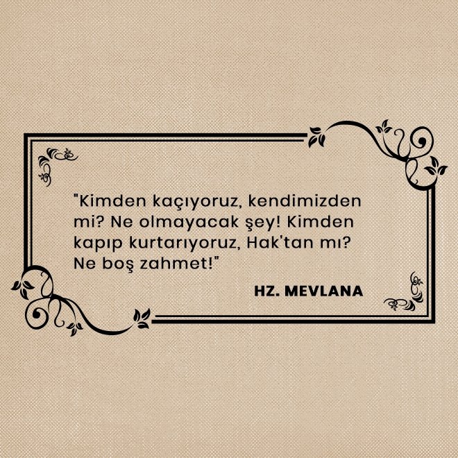 🔸 Mevlana'nın gözü, kulağı, aradığı, sorduğu ve bize emanet etmek istediği ilahi sözü duyacak kulak, ilahi güzelliği görecek göz ve bunu kendisinde gerçekleştirecek olan bütün insanlığı kuşatabilecek bir sevgi, öyle geniş gönül.
