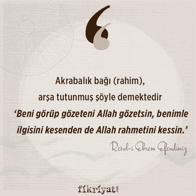 Akrabalık bağı (rahim), arşa tutunmuş şöyle demektedir "Beni görüp gözeteni Allah gözetsin, benimle ilgisini kesenden de Allah rahmetini kessin."