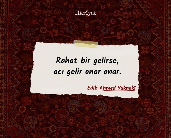 Rahat bir gelirse, acı gelir onar onar. Ey sıkıntısız rahatlık uman, bu dünya ne zaman umutlanacak bir yer oldu?