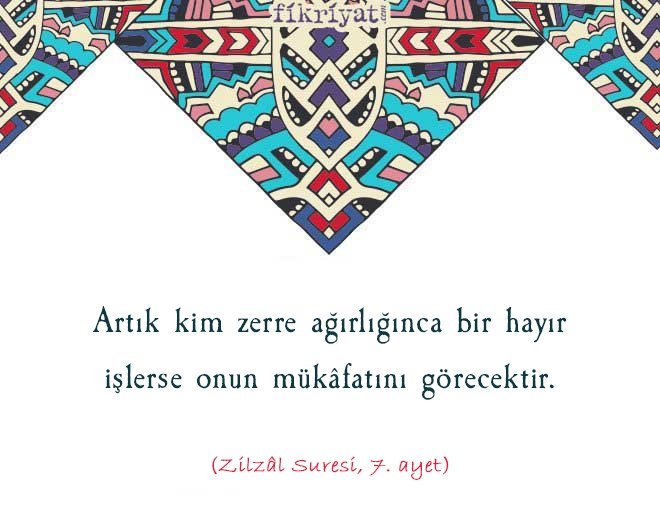 Artık kim zerre ağırlığınca bir hayır işlerse onun mükâfatını görecektir.