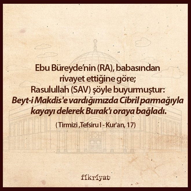 "Beyt-i Makdis'e vardığımızda Cibril parmağıyla kayayı delerek Burak'ı oraya bağladı."