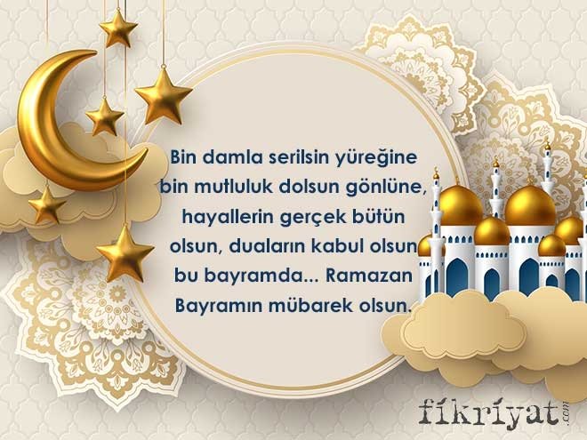 Bin damla serilsin yüreğine, bin mutluluk dolsun gönlüne, bütün hayallerin gerçek olsun, duaların kabul olsun bu bayramda... Ramazan Bayramın mübarek olsun!