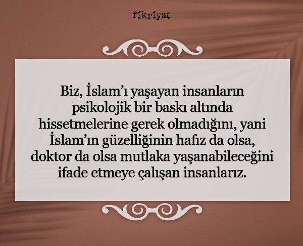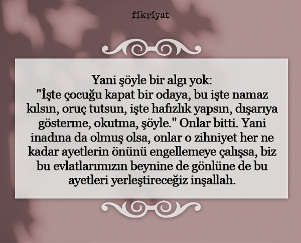 Muharrem Cirit: Bizim kuşak, tabiri caizse türbülans içinde yetişti. Bunun sebebi, manevi değerlerimizle maddi değerlerimiz arasındaki dengeyi bulamamamızdı. Evde anne-babamız bize İslam değerleriyle yaklaşırken dış dünyada realist, kapitalist, hatta emperyalist bir düşünceyle karşılaşıyorduk. Kızlarımızın hafız olması önemli; ama asıl önemlisi bizim yaşadığımız bu türbülansı yaşamamaları. Kızıma hep söylerim: "Senin giydiğin şey, Kur'an-ı Azimüşşan'da bir ayet-i kerime. Bu örtü senin sancağındır. Ona uygun hareket etmeye azmet, Allah da nasip eder." Ben kızımın kendi değerleriyle barışık büyümesini istiyorum. Kendi ülkesinde misafir gibi değil, başı dik yaşasın. Yolculuğumuzda onu en güzele yaklaştırmak için elimden geleni yapacağım. Allah da bu yolda bize rahmetini indirir, güzellikler açar. Belki de cennetin kapısını bize bu vesile açar.