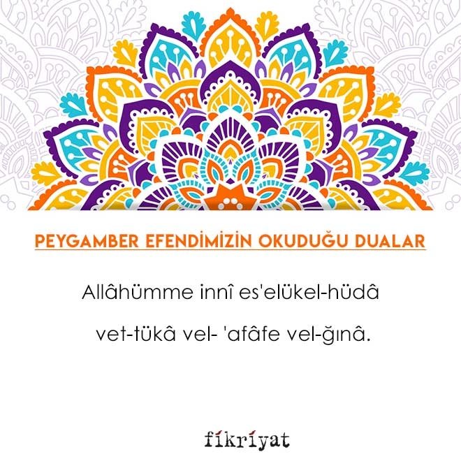 Anlamı: Allah'ım! Senden hidayet, takva, iffet ve gönül zenginliği istiyorum. (Müslim, Dua, 72; İbn Hıbbân, Ed'ıye, No: 900)
