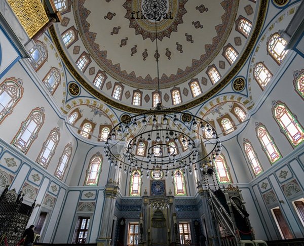 ◾ Kılıç, caminin dikkat çeken bir diğer yanının ise içerisinin çok aydınlık ve tek kubbe altında genişçe bir mekanda sütunlarla bölünmeden ibadet edilebilmesi olduğunu anlattı. Kubbenin bütün ağırlığının duvarlara ve 4 büyük sütun üzerindeki kubbeye yerleştiğini aktaran Kılıç, "Ön tarafta bir mihrap sofası diyebileceğimiz girintili bir alan var. Orada, Ayet-el Kürsi'nin yazılmış olduğu çinili bir pano görüyoruz. Bir de üst tarafında İhlas Suresi'nden bir bölümün yazıldığı madalyon var. Bunlar da yapının klasik havadaki dikkat çekici ayrıntıları. Diğer süslemelerinde daha çok Batı tarzı özellikle desen anlayışı hakim. Bir de içerisinin çok camlı, renkli vitraylarla bezeli olmasıyla özellikle güneşli günlerde rengarenk ışık huzmeleriyle zenginleşmesine şahitlik edebiliriz." dedi.