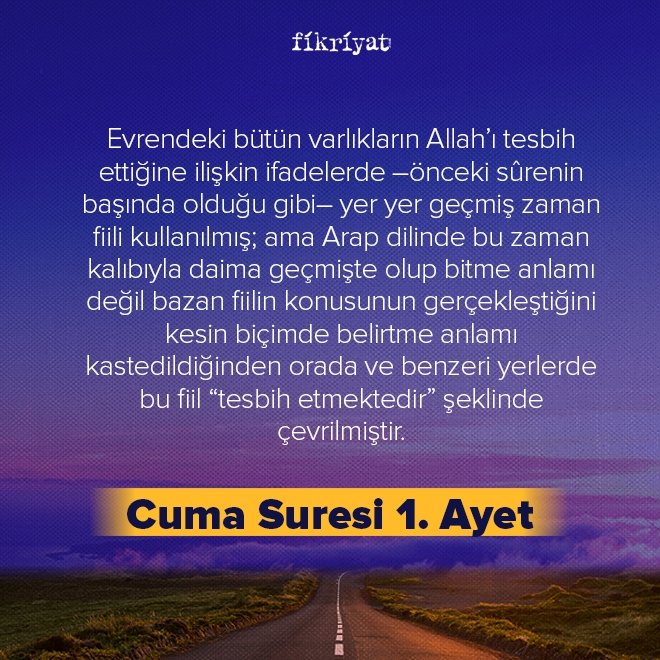 ◼ Evrendeki bütün varlıkların Allah'ı tesbih ettiğine ilişkin ifadelerde –önceki sûrenin başında olduğu gibi– yer yer geçmiş zaman fiili kullanılmış; ama Arap dilinde bu zaman kalıbıyla daima geçmişte olup bitme anlamı değil bazan fiilin konusunun gerçekleştiğini kesin biçimde belirtme anlamı kastedildiğinden orada ve benzeri yerlerde bu fiil "tesbih etmektedir" şeklinde çevrilmiştir. Bu ve benzeri âyetlerde ise "tesbih ediyor" veya "tesbih eder" anlamına gelen bir fiil kullanılması, tesbih olgusunun halen devam ettiğine ve böyle sürüp gideceğine özel vurgu yapan bir ifade olarak anlaşılmıştır.