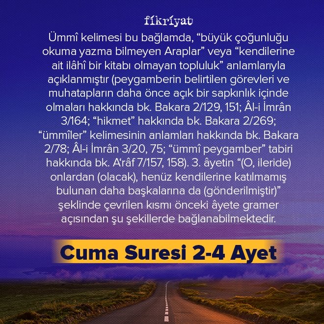 ◼ Ümmî kelimesi bu bağlamda, "büyük çoğunluğu okuma yazma bilmeyen Araplar" veya "kendilerine ait ilâhî bir kitabı olmayan topluluk" anlamlarıyla açıklanmıştır (peygamberin belirtilen görevleri ve muhatapların daha önce açık bir sapkınlık içinde olmaları hakkında bk. Bakara 2/129, 151; Âl-i İmrân 3/164; "hikmet" hakkında bk. Bakara 2/269; "ümmîler" kelimesinin anlamları hakkında bk. Bakara 2/78; Âl-i İmrân 3/20, 75; "ümmî peygamber" tabiri hakkında bk. A'râf 7/157, 158). 3. âyetin "(O, ileride) onlardan (olacak), henüz kendilerine katılmamış bulunan daha başkalarına da (gönderilmiştir)" şeklinde çevrilen kısmı önceki âyete gramer açısından şu şekillerde bağlanabilmektedir.