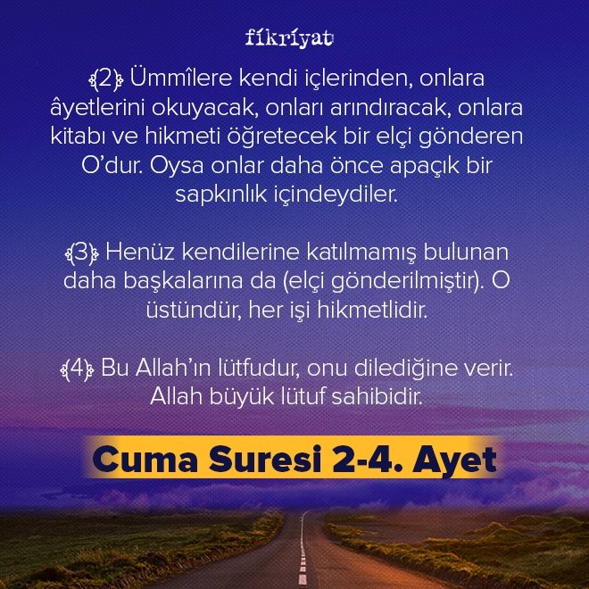 ﴾2﴿ Ümmîlere kendi içlerinden, onlara âyetlerini okuyacak, onları arındıracak, onlara kitabı ve hikmeti öğretecek bir elçi gönderen O'dur. Oysa onlar daha önce apaçık bir sapkınlık içindeydiler.