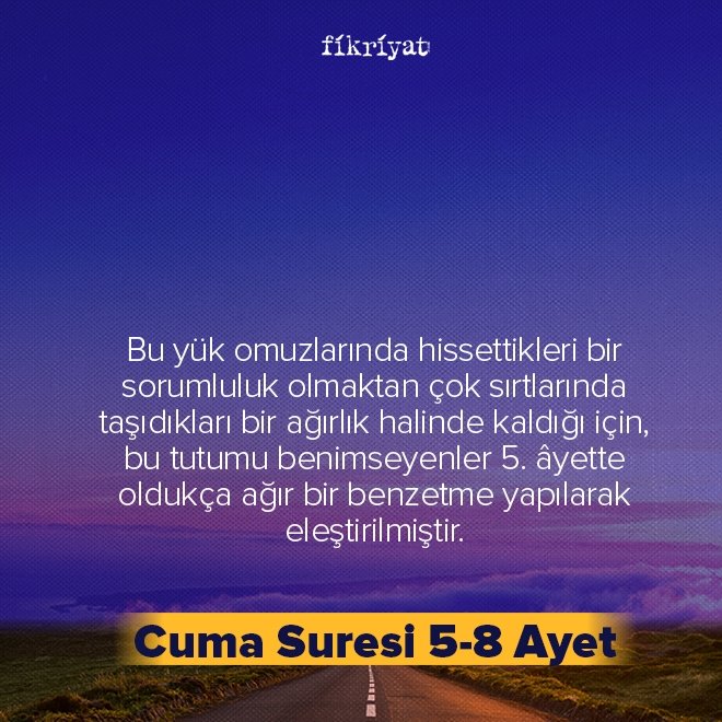 ◼ Bu yük omuzlarında hissettikleri bir sorumluluk olmaktan çok sırtlarında taşıdıkları bir ağırlık halinde kaldığı için, bu tutumu benimseyenler 5. âyette oldukça ağır bir benzetme yapılarak eleştirilmiştir. Sırtında koca koca kitaplar taşıdığı halde onların sadece maddî ağırlığı altında ezilen ama kendisiyle onların içerikleri arasında bir bağ kurma yeteneğine sahip olmayan merkep benzetmesi, bir mesel (somut düşünmeyi ve sonuçlar çıkarmayı kolaylaştıran canlı bir örnek) olduğu için kuşkusuz sırf Tevrat'la yükümlü tutulanlara değil benzer tutumu benimseyen bütün ilâhî dinlerin mensuplarına yöneltilmiş bir eleştiri ve uyarı niteliğindedir.