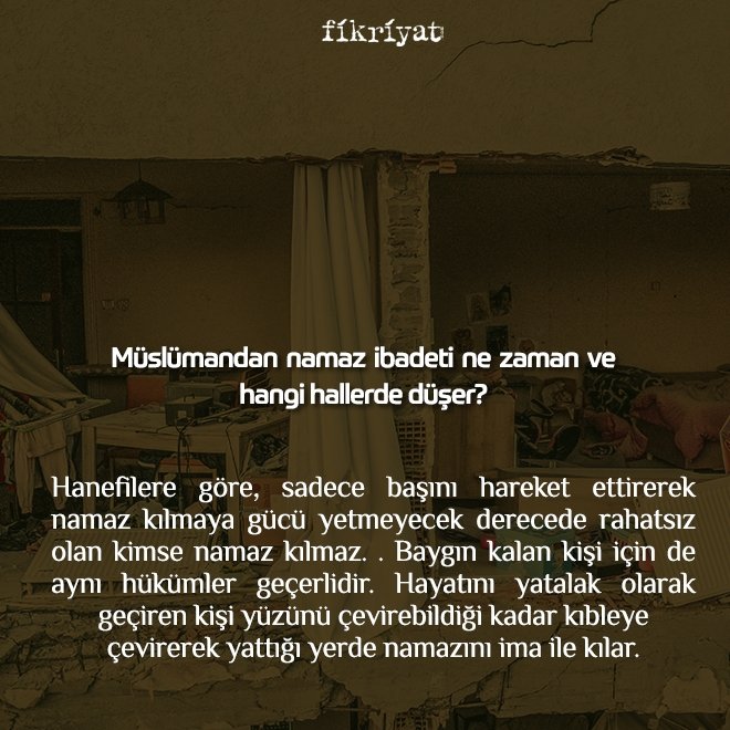 6 Şubat'ta gerçekleşen 7,7 ve 7,6 şiddetindeki Kahramanmaraş depremleri sonucunda ülkemizin ciddi bir kısmı afet bölgesi haline geldi. İnsanlar bu zor durumda dini vecibeleri öğrenmek ve uygulamak için Diyanet İşleri Başkanlığı Din İşleri Yüksek Kurulu'na onlarca soru sordu. Bu soruların içinden en çok merak edilenleri cevaplarıyla beraber sizler için derledik.