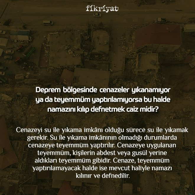 ◾ Deprem bölgesinde cenazeler yıkanamıyor ya da teyemmüm yaptırılamıyorsa bu halde namazını kılıp defnetmek caiz midir?