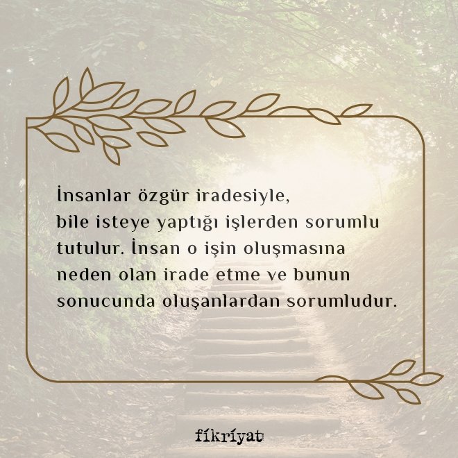 🔸 İnsanlar özgür iradesiyle, bile isteye yaptığı işlerden sorumludur. Bununla birlikte Yüce Allah (CC), unutarak, bilmeyerek işlenen günahlardan kullarını sorumlu tutmaz.