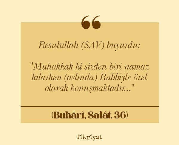 "Muhakkak ki sizden biri namaz kılarken (aslında) Rabbiyle özel olarak konuşmaktadır..."