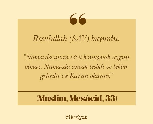 "Namazda insan sözü konuşmak uygun olmaz. Namazda ancak tesbih ve tekbir getirilir ve Kur'an okunur."
